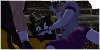 Pittsburgh, PA - With the old veteran Jerome Bettis second in the league in rushing yards behind rookie sensation Ian Thorpe coming into week 15, the game between the Steelers and the FHSC was sure to be a knock-down drag-out affair. The 65,000 screaming fans in Pittsburgh certainly got their money's worth.